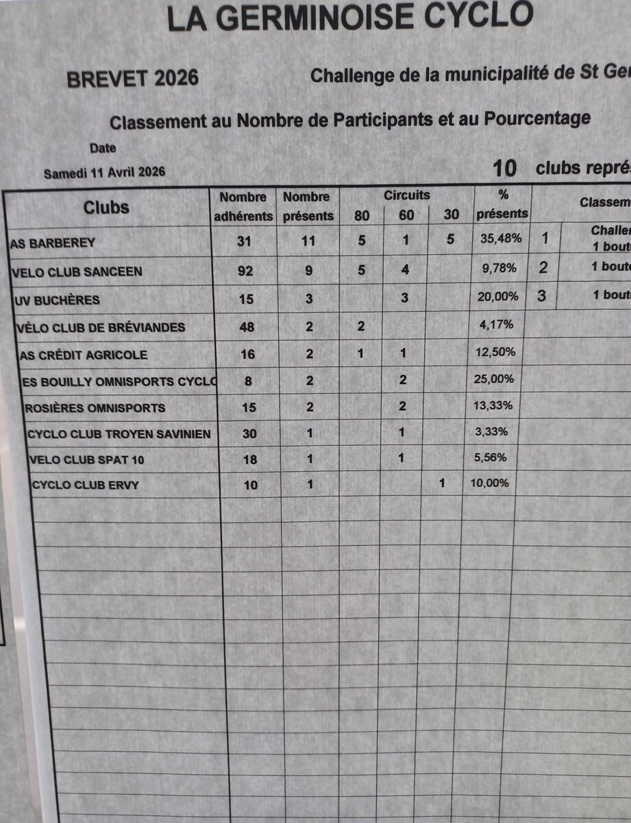 Nous félicitons nos courageux sociétaires et nous remercions le club de St Germain pour son organisation.