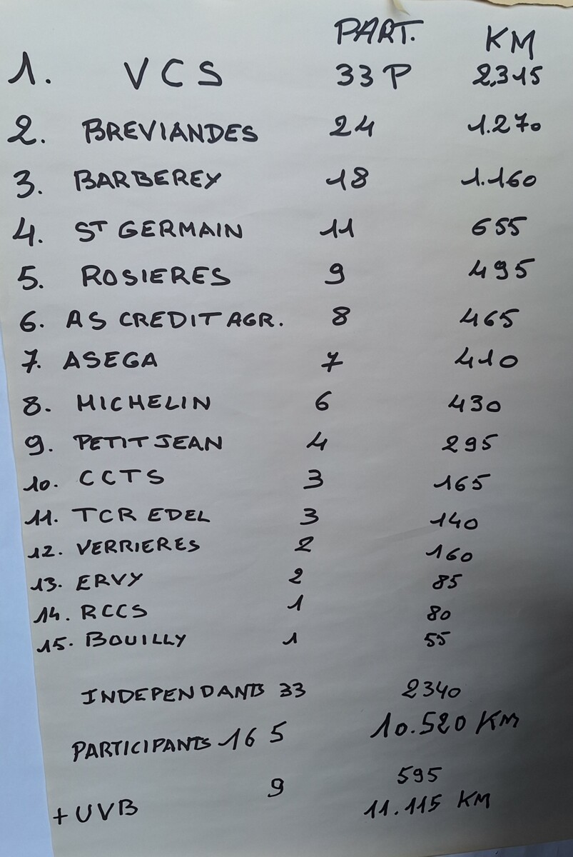Cette belle participation permet au club de terminer à la 3ème place en nombre de participants et remporte une coupe et une bouteille.