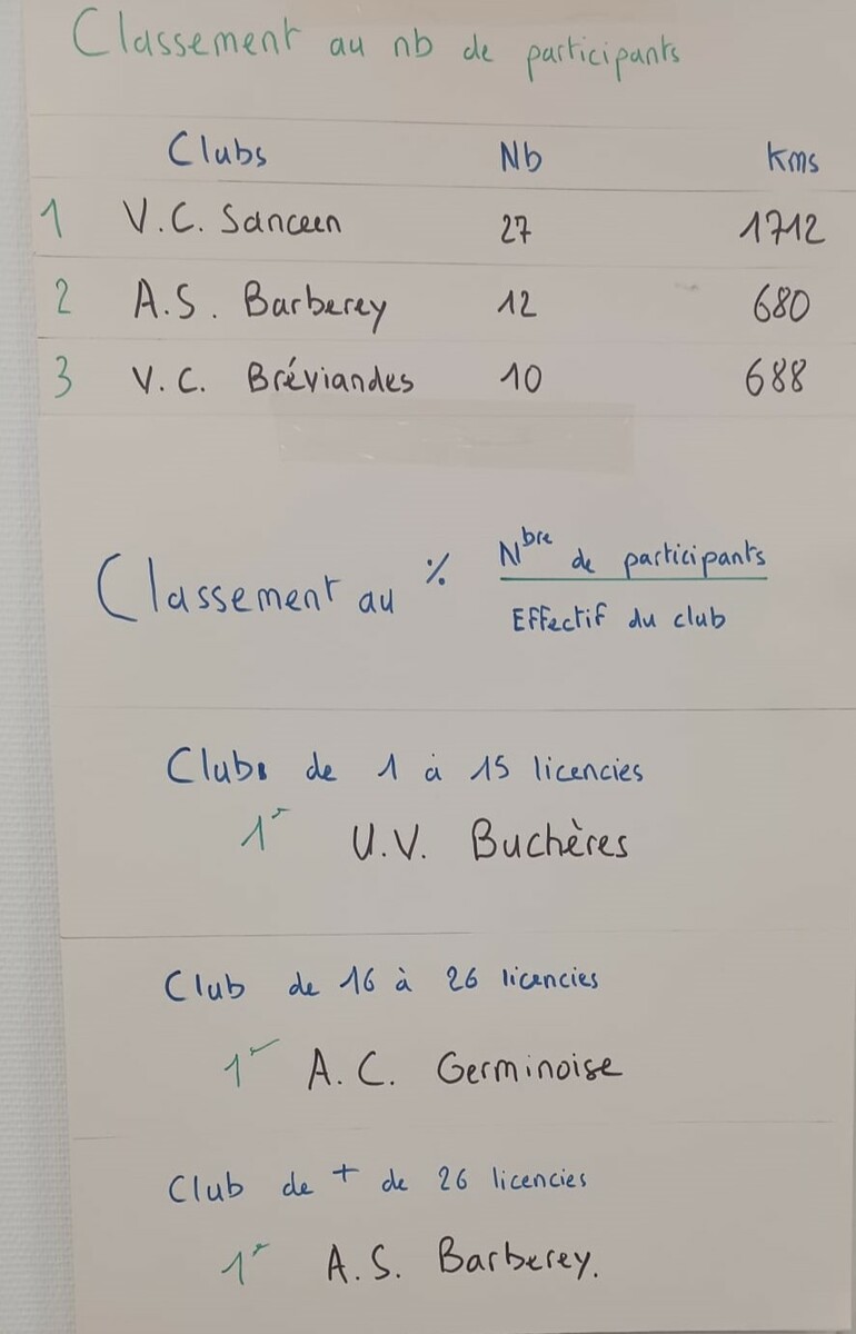 Bien que représenté seulement par 12 cyclos, notre club à été récompensé pour sa seconde place au nombre et pour sa première place au pourcentage pour les clubs de plus de 25 licenciés.