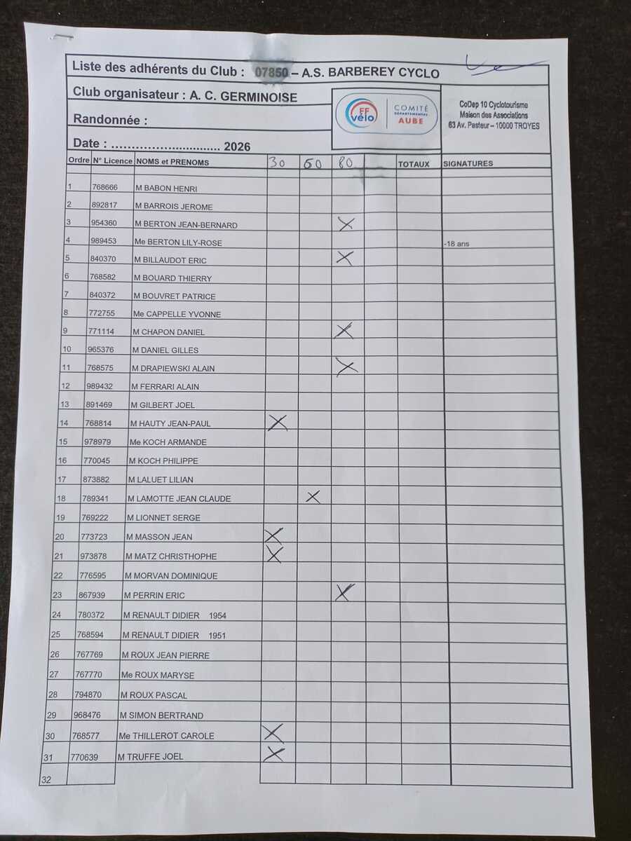 Finalement 43 cyclos s'inscrivent sur les 3 parcours, parmi eux 10 Barberey.