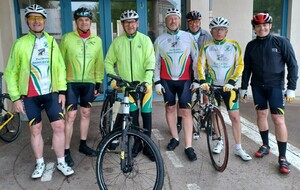 5 autres ( Christophe M, Jeannot M, Joël T, Jean Paul H et Carole T, seule feminine ) renoncent au 60 pour se rabattre sur un 30 allongé, histoire de ne pas salir les vélos pour une petite distance.
