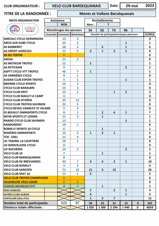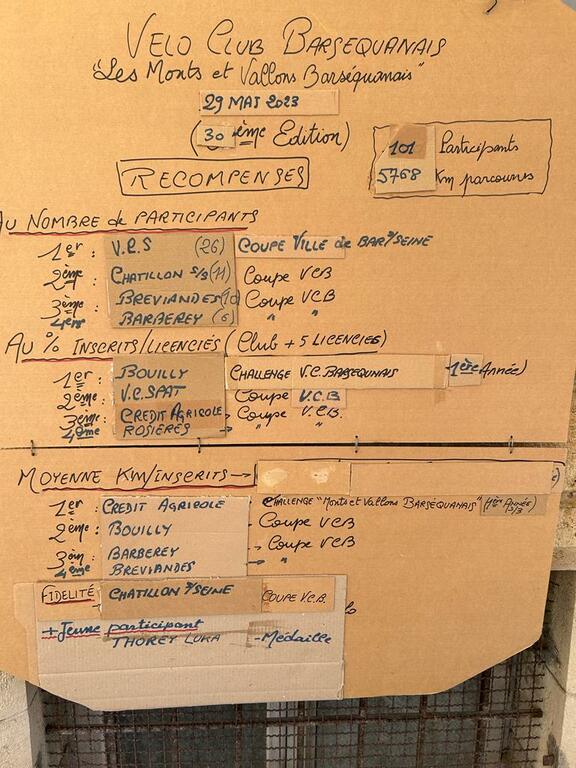 101 participants ce matin du 29 mai pour la 30ème édition des "Monts et Vallons Barséquanais" organisée par le vélo club barséquanais.