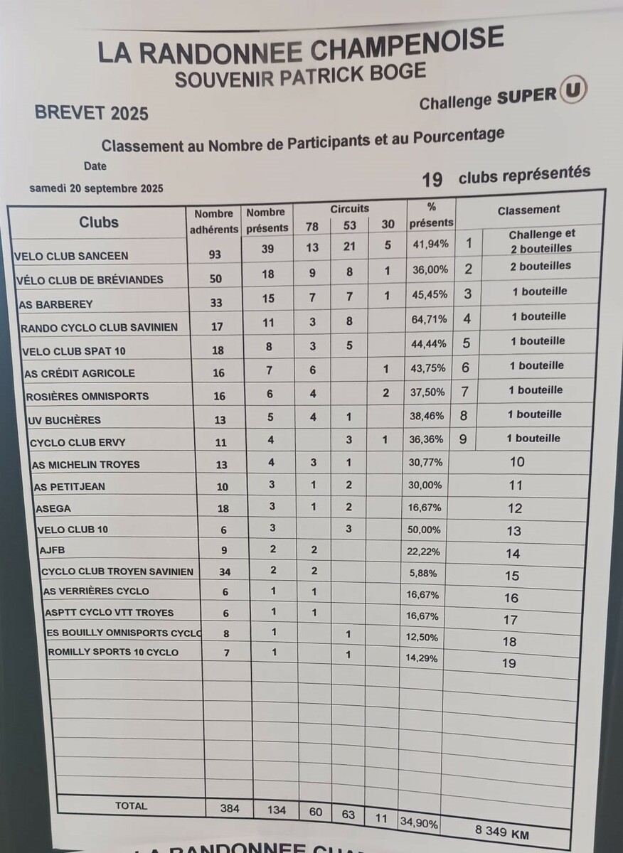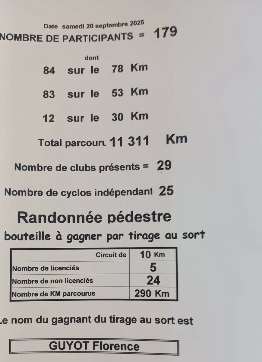 179 participants se sont donnez rendez-vous cet après-midi pour la « randonnée champenoise » organisée par l’amicale cyclo germinoise.