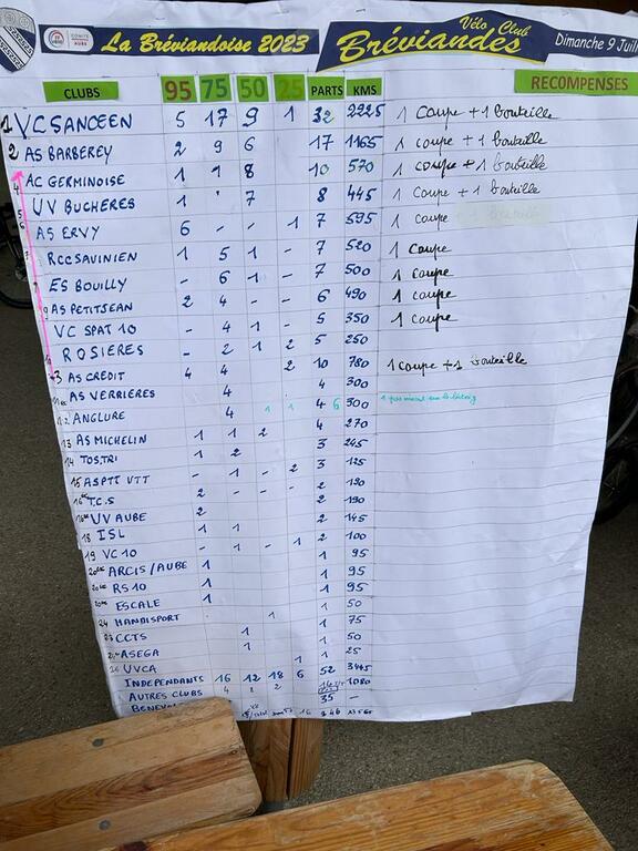 Ce matin, l'AS BARBEREY remporte une coupe et une bouteille de champagne en se classant deuxième (derrière le VCS) de la 43ème Bréviandoises organisée par le VC Bréviandes.