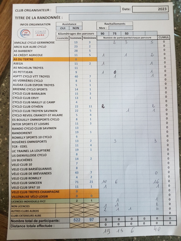 Au total, c'est donc 40 participants, représentant 10 clubs, qui ont effectué les 3 parcours (19 sur le 90, 15 sur le 75 et 6 sur le 50), la palme revenant au VC Sancéen avec 16 inscrits.