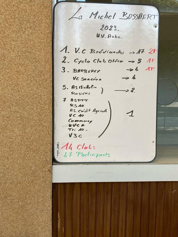 4 cyclos de l'AS BARBEREY ( Jean-Luc et Martine CLEMENT, Jean-Claude LAMOTTE et Jérôme BARROIS) ont bravé la chaleur de cet après-midi pour réaliser la randonnée cycliste organisée par l'UV Aube en souvenir de Michel Bossaert.