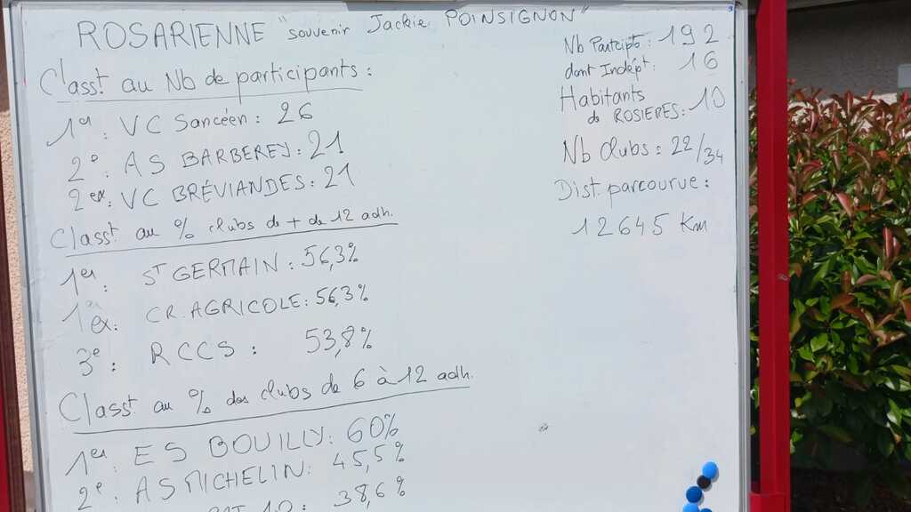 Bénéficiant d'un temps favorable aux cyclos, la randonnée organisée par nos amis du ROS a connu un beau succès avec 193 cyclos. Les 21 participants de Barberey, répartis sur le 95 (4), le 60 (14) et le 35 (3) ont permis au club de terminer à la 3ème place derrière le VCS avec 26 participants , Breviandes avec 22 cyclos et de ramener deux nouvelles bouteilles que tous seront heureux de déguster lors de notre AG. Seul bémol à cette belle matinée : la chute de Thierry Corbisieri, heureusement sans gravité. Il a pu repartir et terminer la sortie sans problème.