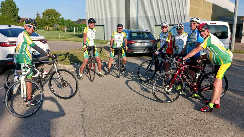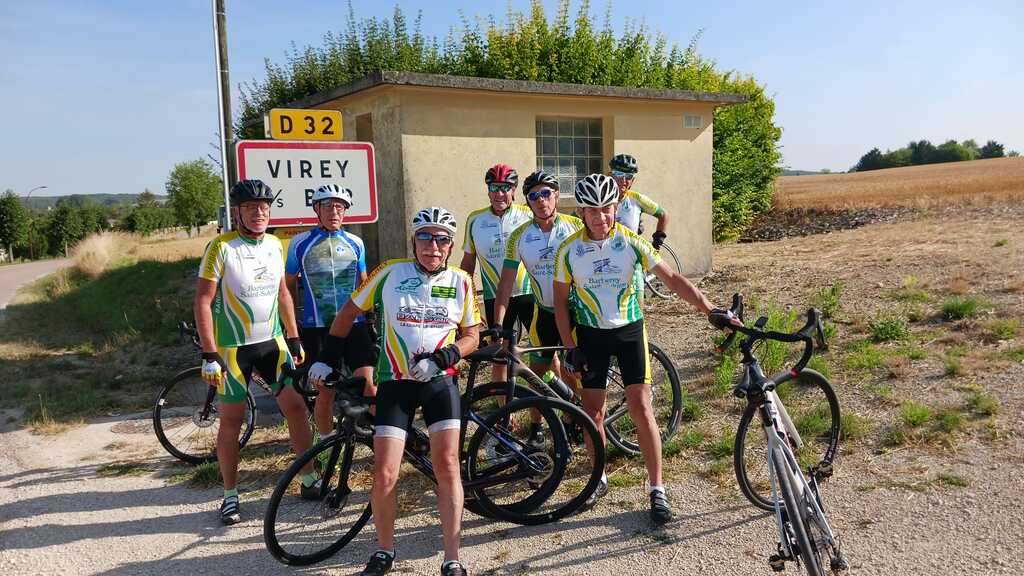 Petite sortie club sympathique. 60 km sous le soleil, sur un circuit sans difficulté, si ce n'est une portion de route fraîchement gravillonnee et le vent defavorable sur le retour.