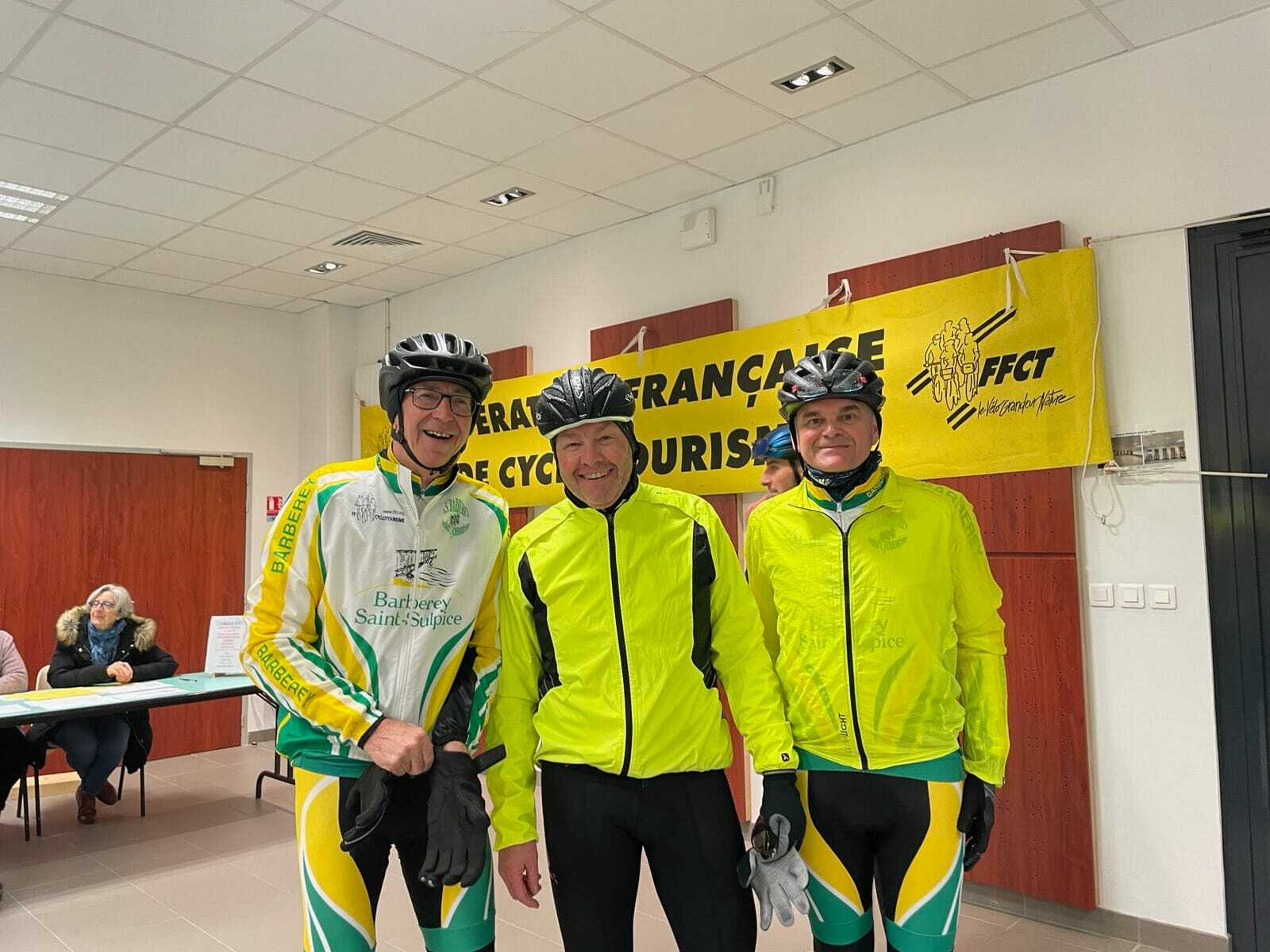 Nos trois courageux , qui ont bravé la pluie sur le 55 km des balades sanceennes. Les organisateurs n'ont malheureusement enregistré que 36 participants. Il y aura des jours meilleurs. Merci au VCS et bravo à nos 3 cyclos.