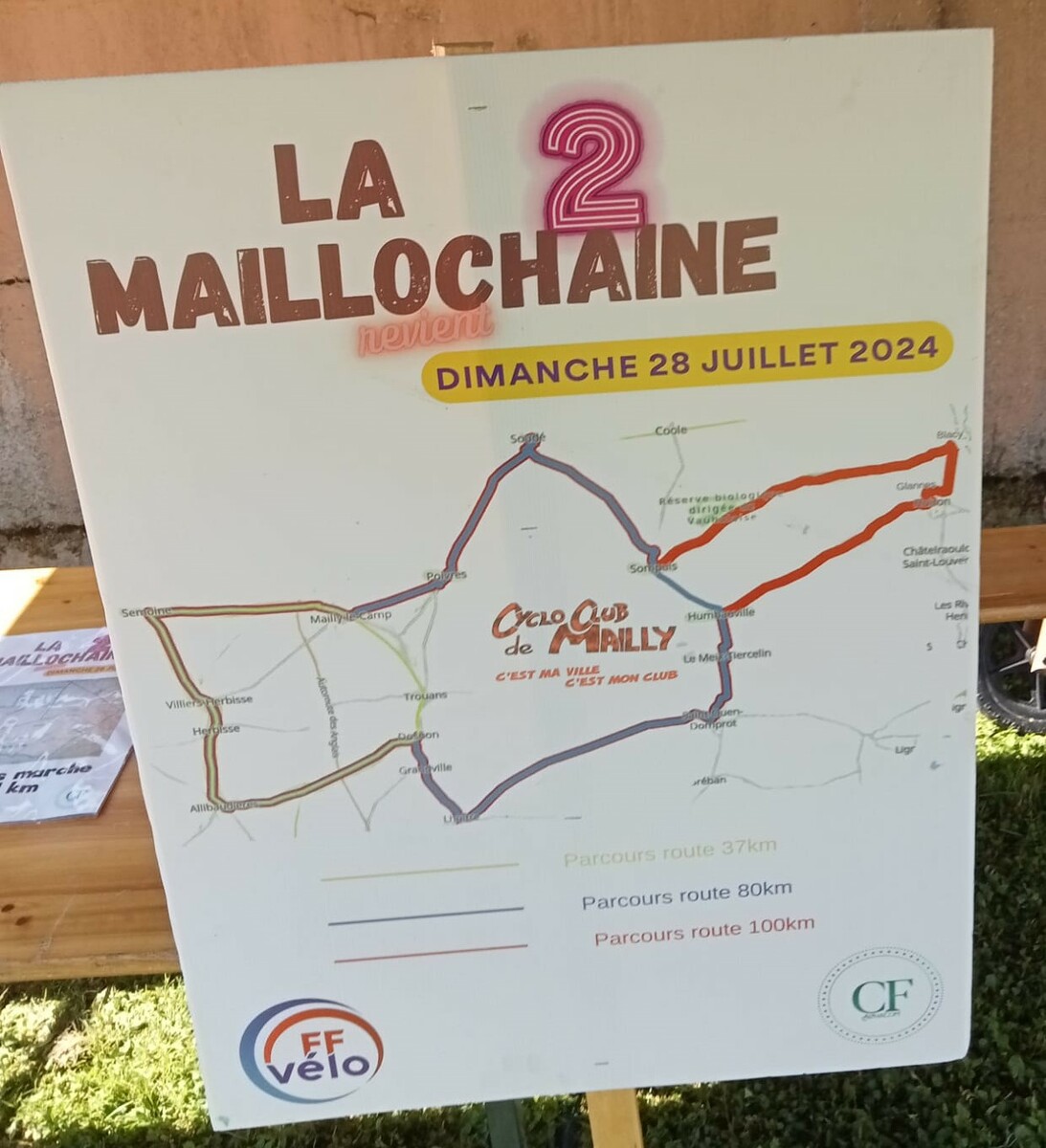Il faisait très beau en ce dimanche matin, mais malgré cette météo estivale, seulement deux cyclos de l’AS Barberey ont fait le déplacement jusqu’à Mailly-le-Camp pour participer à cette 2ème édition de la « Maillochaine » organisée par le Cyclo-club Mailly et qui a réuni plus de 200 participants. Et ce malgré le plan vigipirate mis en place pour les JO ..