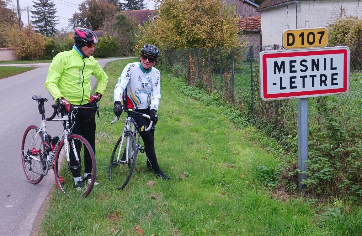 Trois cyclos ( Michel B, Philippe F et jean paul H ) sur un parcours pas si facile qu'on pourrait le croire dans la plaine champenoise.
